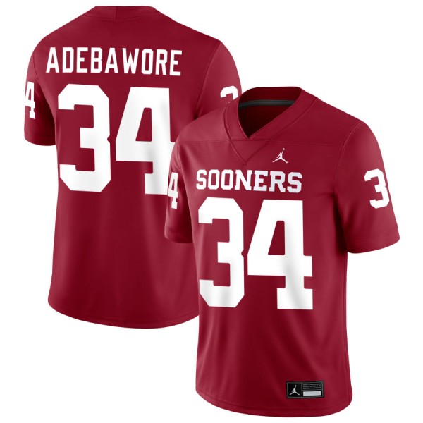 • Adepoju Adebawore Boomer Sooner 2025 #34 Men College Football Jerseys - Crimson
