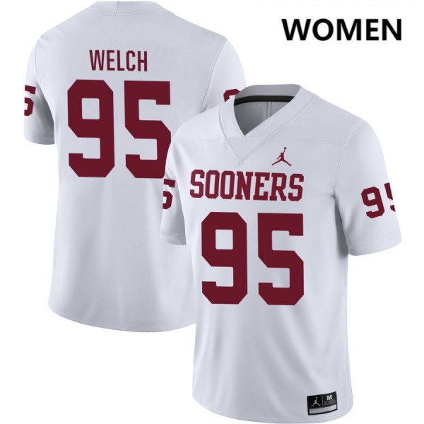Austin Welch OU College Football Women's #95 Player Jerseys - White 764219-372
