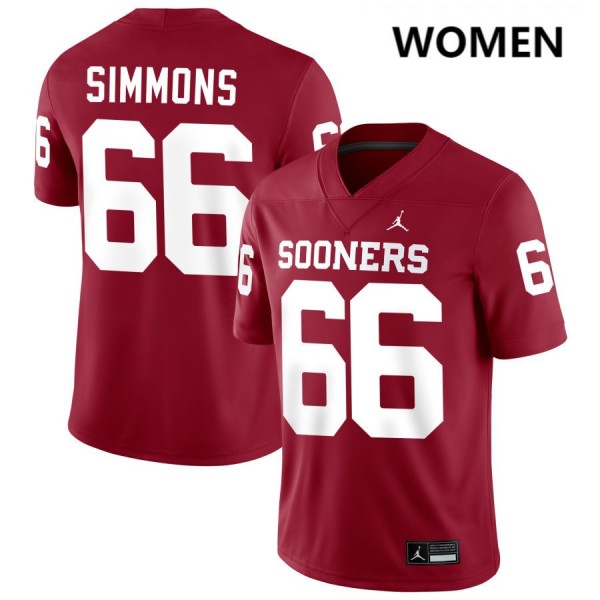 • Derek Simmons OU Sooners College Football Stitched #66 Women's Jerseys - Crimson