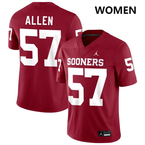 • Gunnar Allen OU College Football Embroidery #57 Womens Jerseys - Crimson