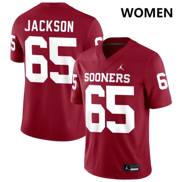 • Jayden Jackson Sooners College Football Women #65 University Jerseys - Crimson