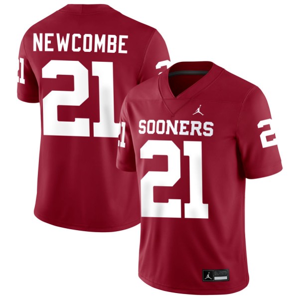 • Jeremiah Newcombe Boomer Sooner Men's Player #21 College Football Jerseys - Crimson