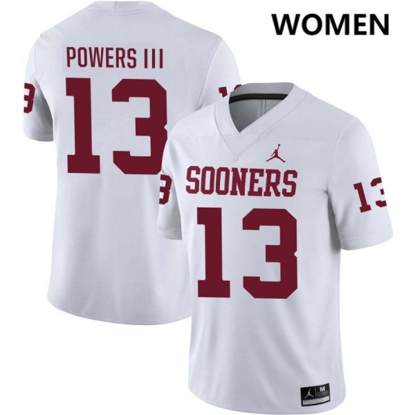 Reggie Powers III Oklahoma University Women #13 College Football Jersey - White 778409-164