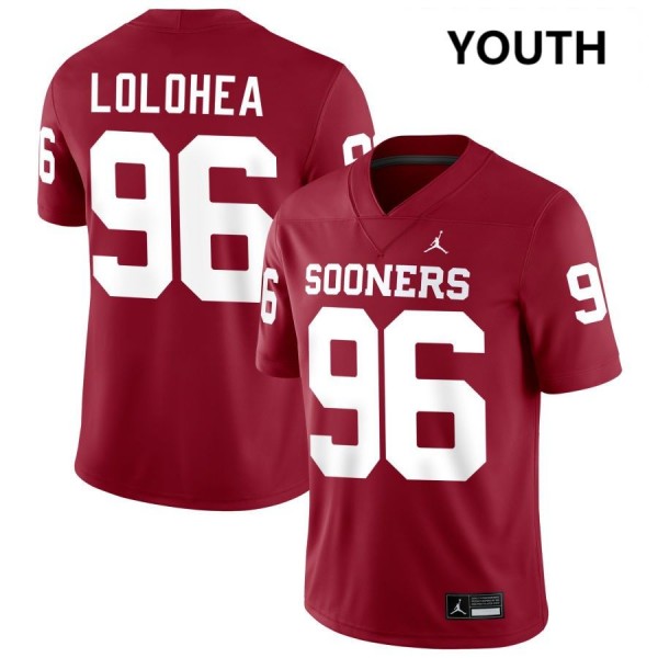 • Siolaa Lolohea Boomer Sooner College Football NCAA Youth #96 Jerseys - Crimson