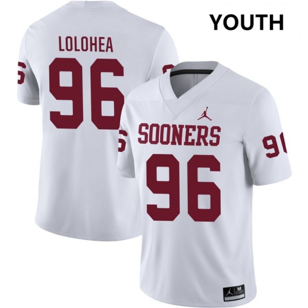 • Siolaa Lolohea Boomer Sooner University College Football #96 Youth Jerseys - White