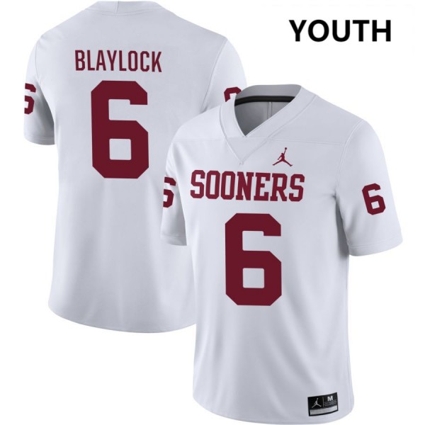 Tory Blaylock OU Embroidery College Football Youth #6 Jersey - White 140865-190