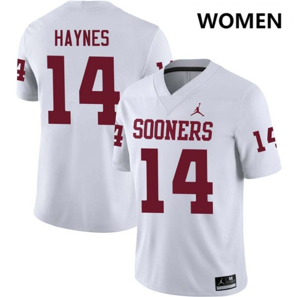Trystan Haynes OU Official #14 Womens College Football Jerseys - White 583045-406